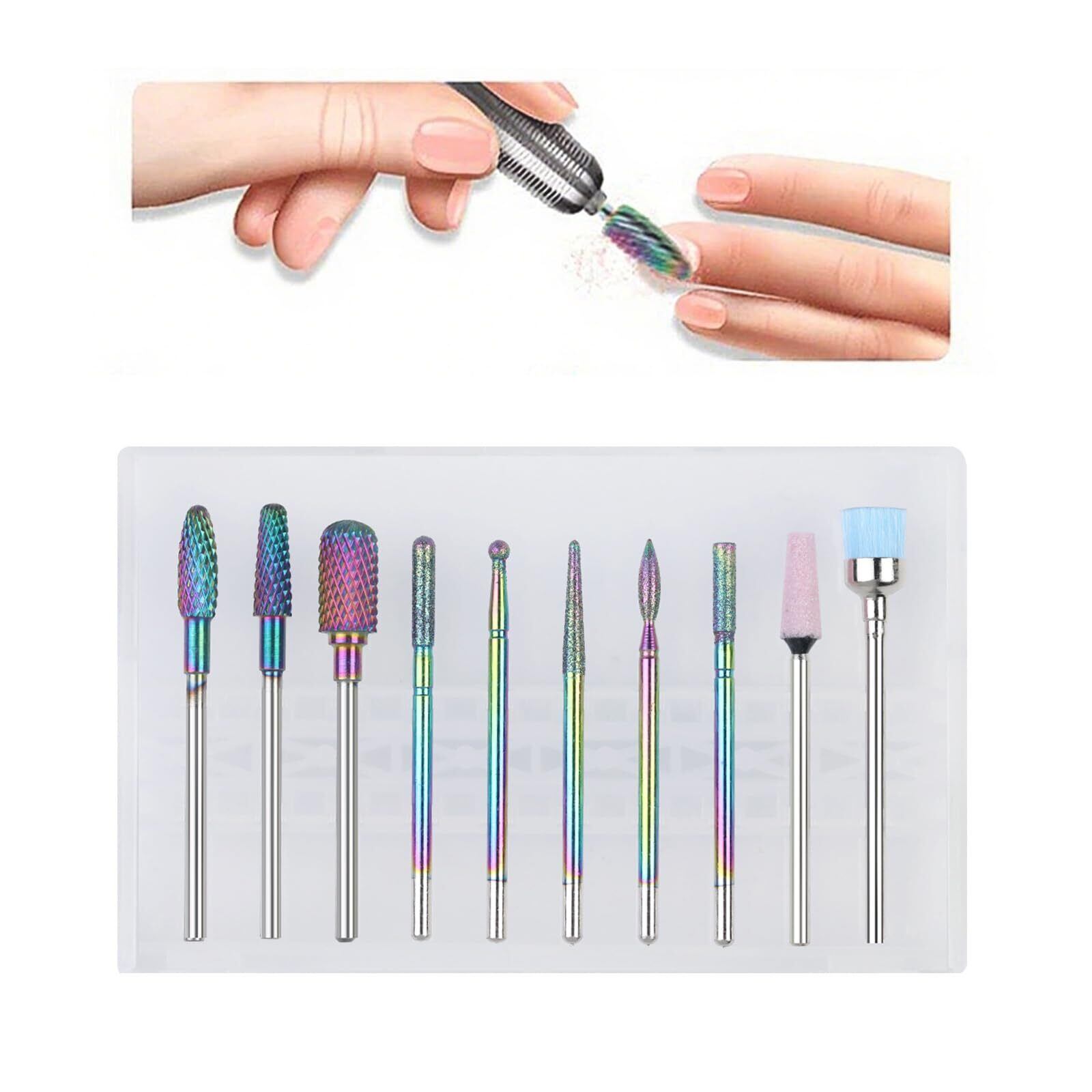 ネイルマシン用ビット ネイル研削ヘッド 10種セット タングステン合金製 耐摩耗性 爪磨き ネイルケア用 ネイルオフ・研削・ポリッシュ・甘皮処理 DIY工具