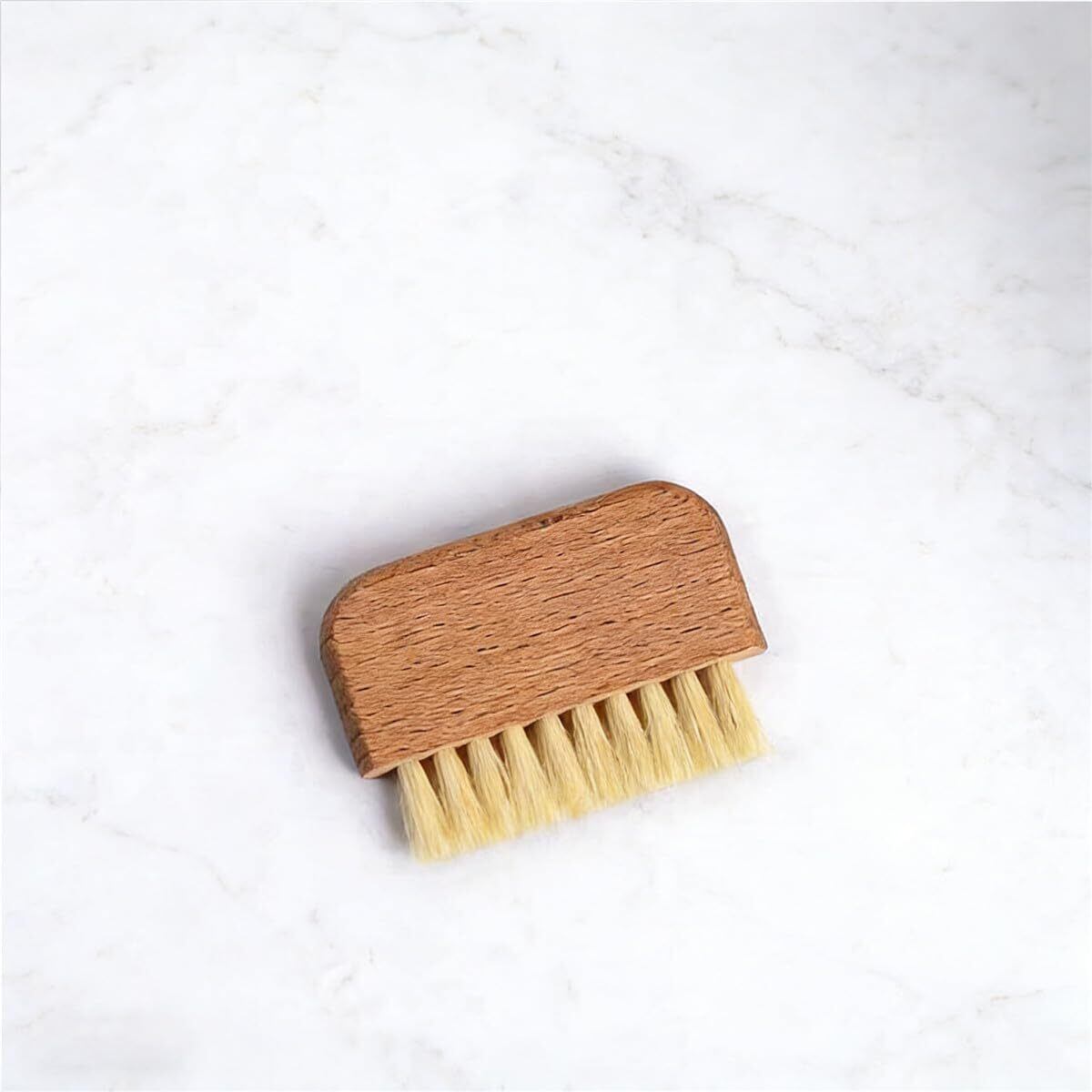 本品は、木材のハンドルと猪毛のブラシ部分から構成される製品です。手に持って使用することを想定した形状をしています。ブラシ部分を対象物の表面に接触させ、動かすことができます。使用後は、水を用いてブラシ部分を洗浄することが可能です。その後、風通しの良い環境で水分を除去する方法があります。