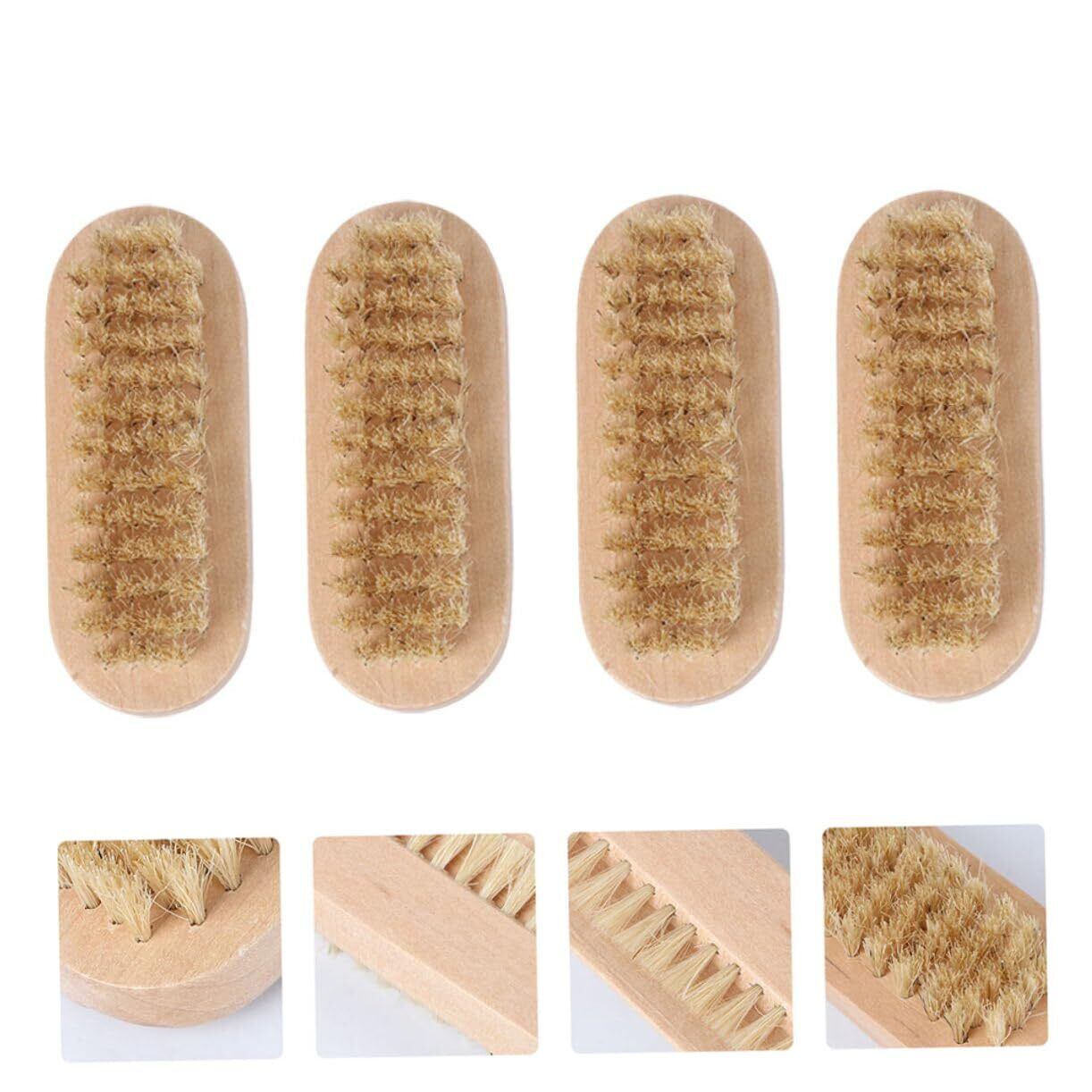NOLITOY 4個木製猪鬃毛爪ブラシ 両面設計 ネイルクリーングッズ 細部まで洗浄可能 便利な携帯用 子供から大人まで使用可
