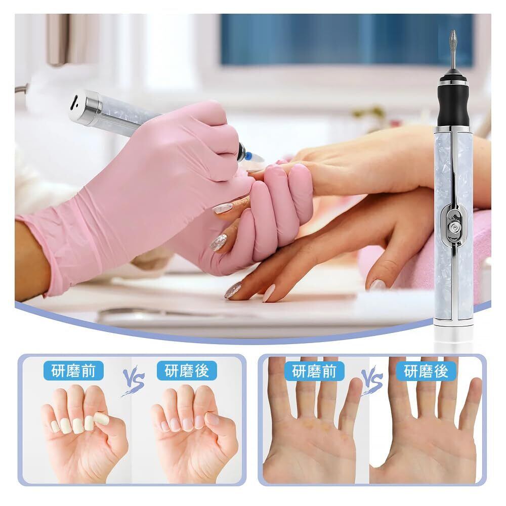 持ち運びが簡単:ネイルドリルは軽くてコンパクトなので、持ち運びが簡単です。バッグや引き出しのスペースをとらず、自宅でも外出先でも使用できます。旅行や自宅での使用に最適です。