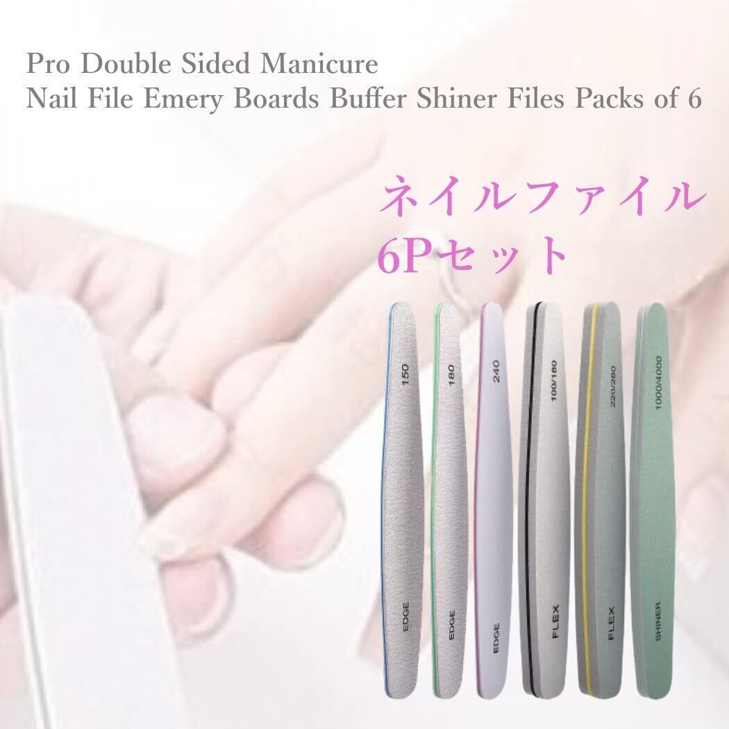 【新春セール】HappyHome ネイルファイル 爪やすり 6本セット 爪磨き 両面タイプ ゼブラファイル #150#180#240 スポンジバッファー 100/180 220/280 シャイナー 1000/4000