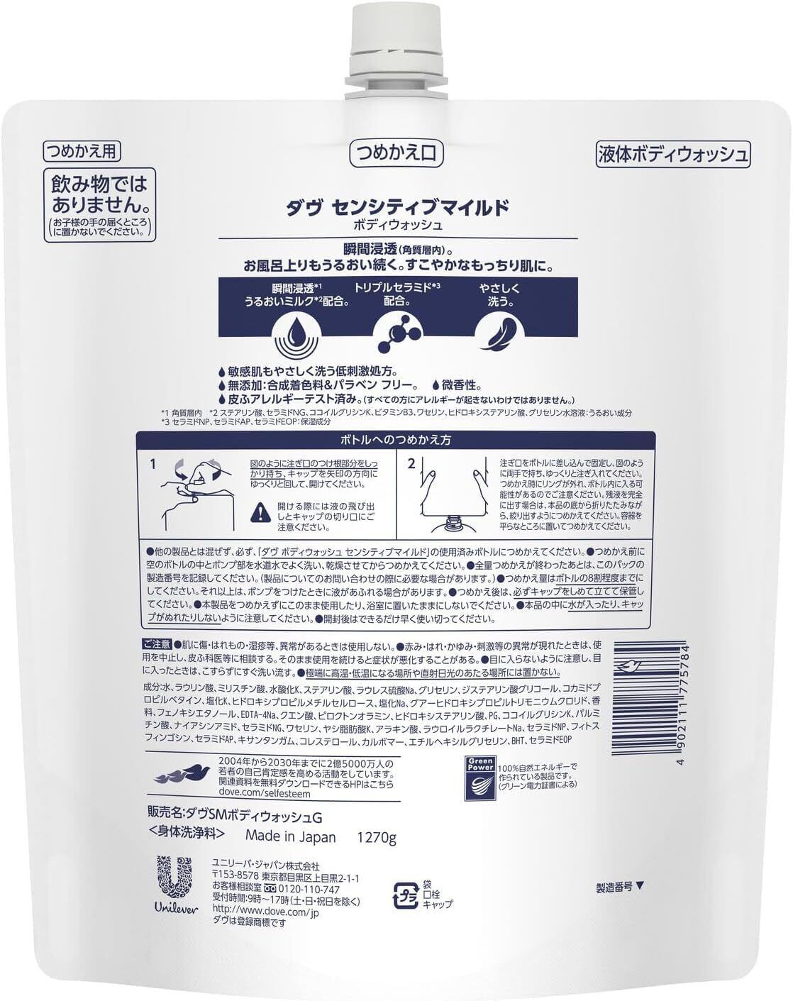 Dove(ダヴ) センシティブマイルド ボディーソープ 詰め替え 大容量 1270g 保湿 無添加 敏感肌 低刺激処方