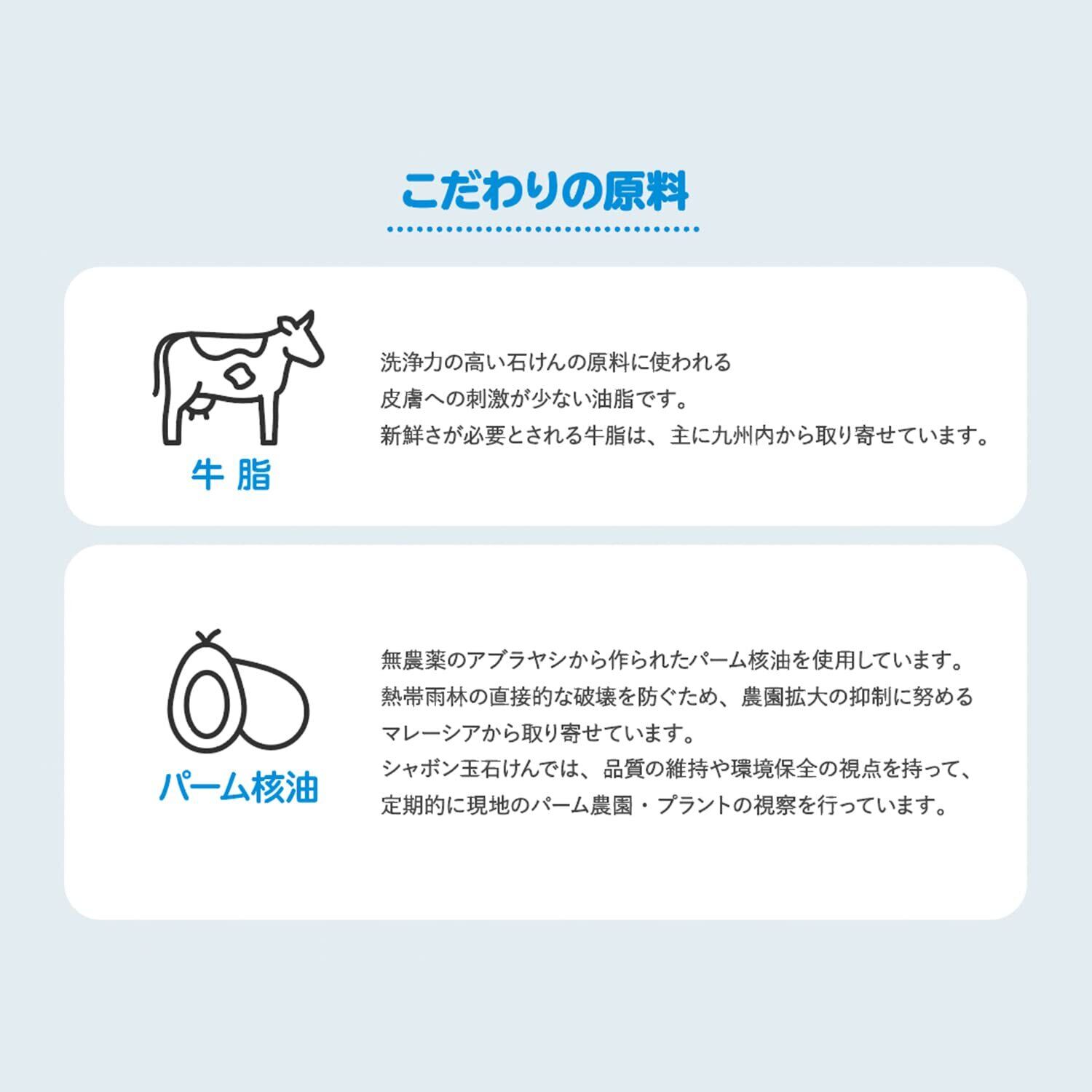 香料、着色料、酸化防止剤(EDTA-4Naなどのエデト酸塩)、合成界面活性剤を使用していない無添加石けんです。
