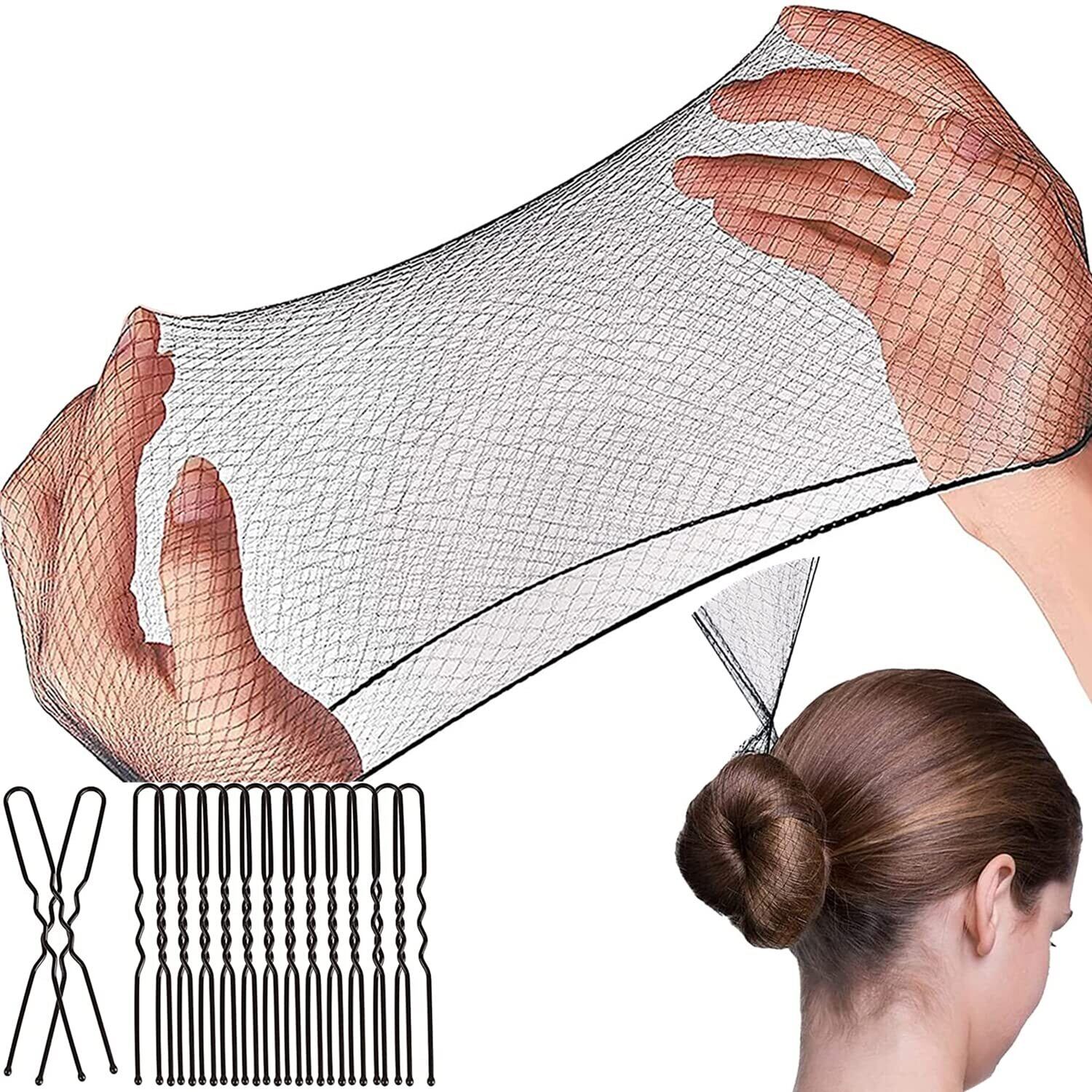 【サイズ】: ヘアネット約 55 * 10 cm(L * W)、ロングヘアやセミロングに適応。Uピン:6CM 玉付き 【材質】:ヘアネット・ポリエステル Uピン・スチール カラー:ブラック