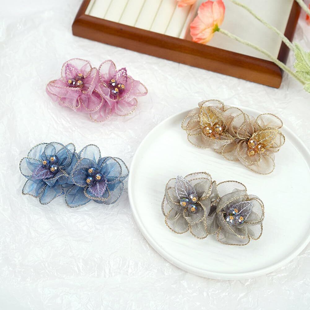 FASELE ヘアクリップ バレッタ キラキラ 花 メッシュ ヘッドドレス ウェディング ヘアアクセサリー 髪飾り 髪留め 結婚式 ヘアピン かわいい 着物髪飾り 優雅的 オシャレ 母の日 七五三 プレゼント 贈り物