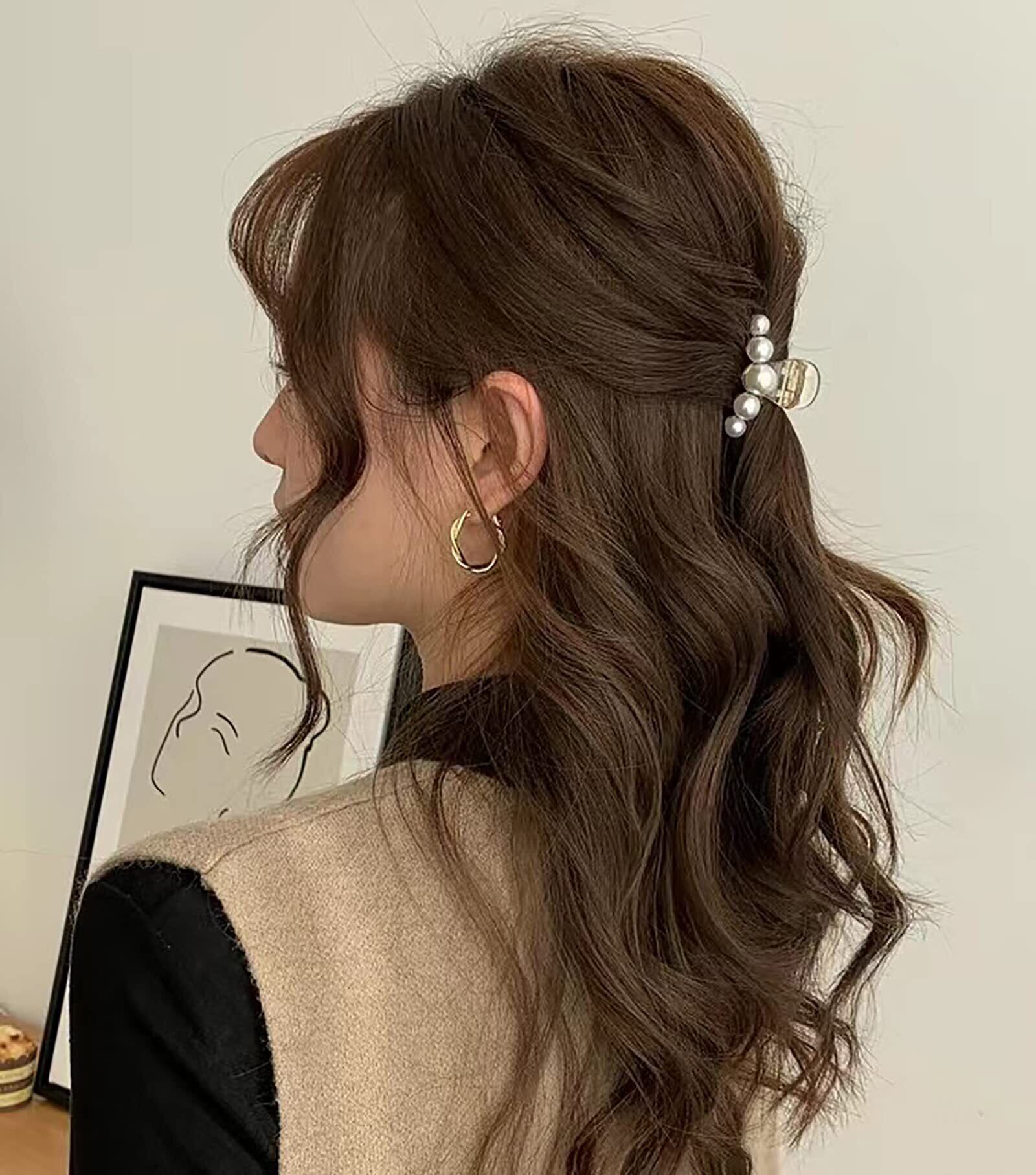 パール バンスクリップ ヘアクリップ 大粒パール バレッタ まとめ髪 髪飾り ヘアアクセサリー ヘアピン 小さめ ミニ 髪留め ヘアアレンジ アクセント レディース 大人かわいい 韓国 オルチャン へあくりっぷ ヘアピン バンスクリップ かみどめ クリップ 髪 (A)