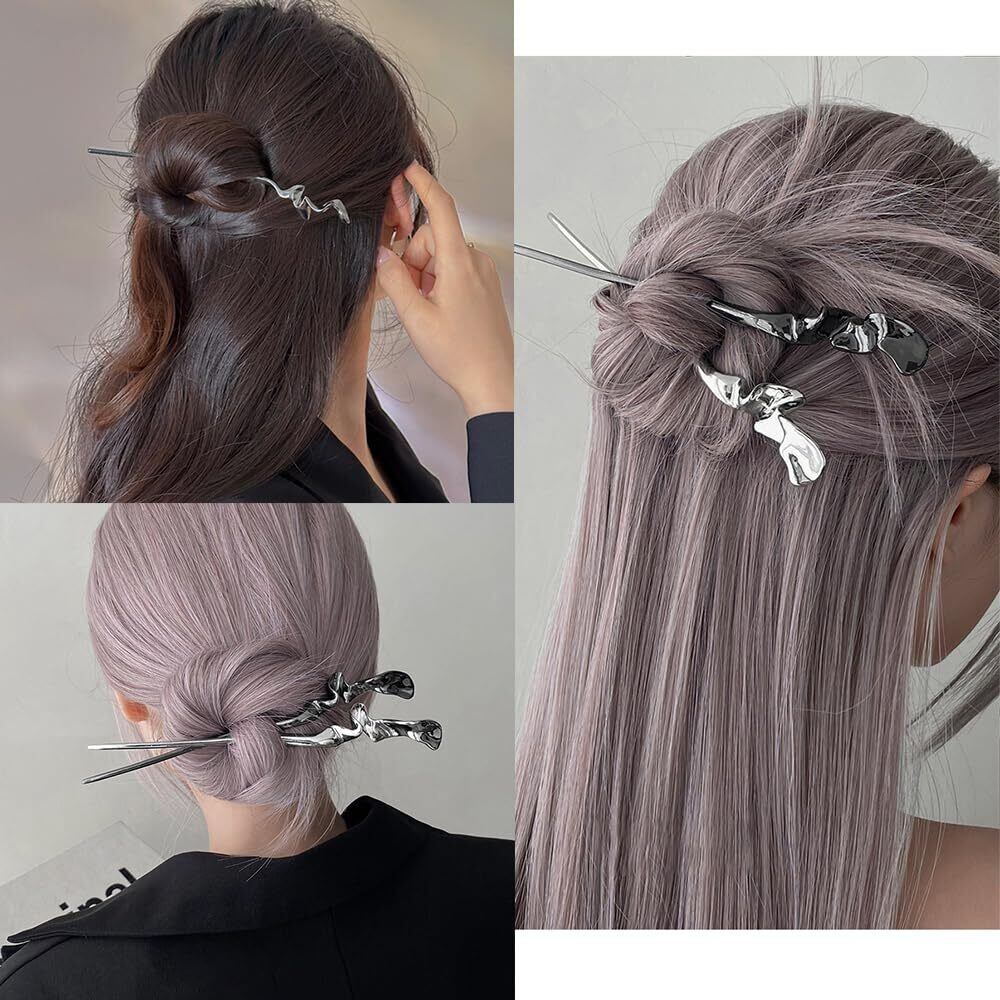 【高品質なヘアスティック】耐久性に優れた金属合金製で、表面は電錫めっき処理されています。安全で色褪せしにくく、信頼性が高いです。メタリックカラーとシルバーの2色展開で、どんなヘアスタイルにもぴったり。