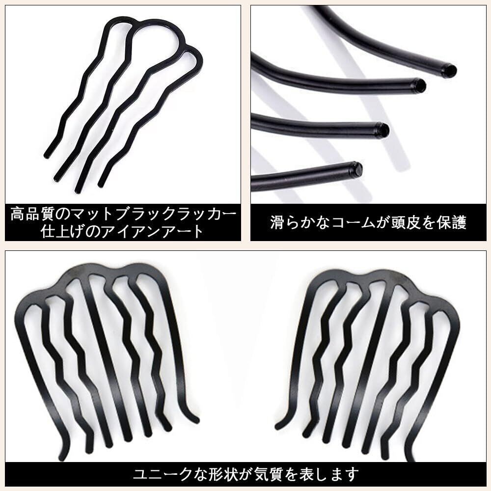 【特価セール】夜会巻きコーム 髪留め かんざし コーム ヘアクリップ、ヘアアクセサリー、お団子、イブニングウェア、U字ピン、シンプルなお団子、結婚式、卒業式、入学式、宴会などに適しています( 10個セット ブラック )