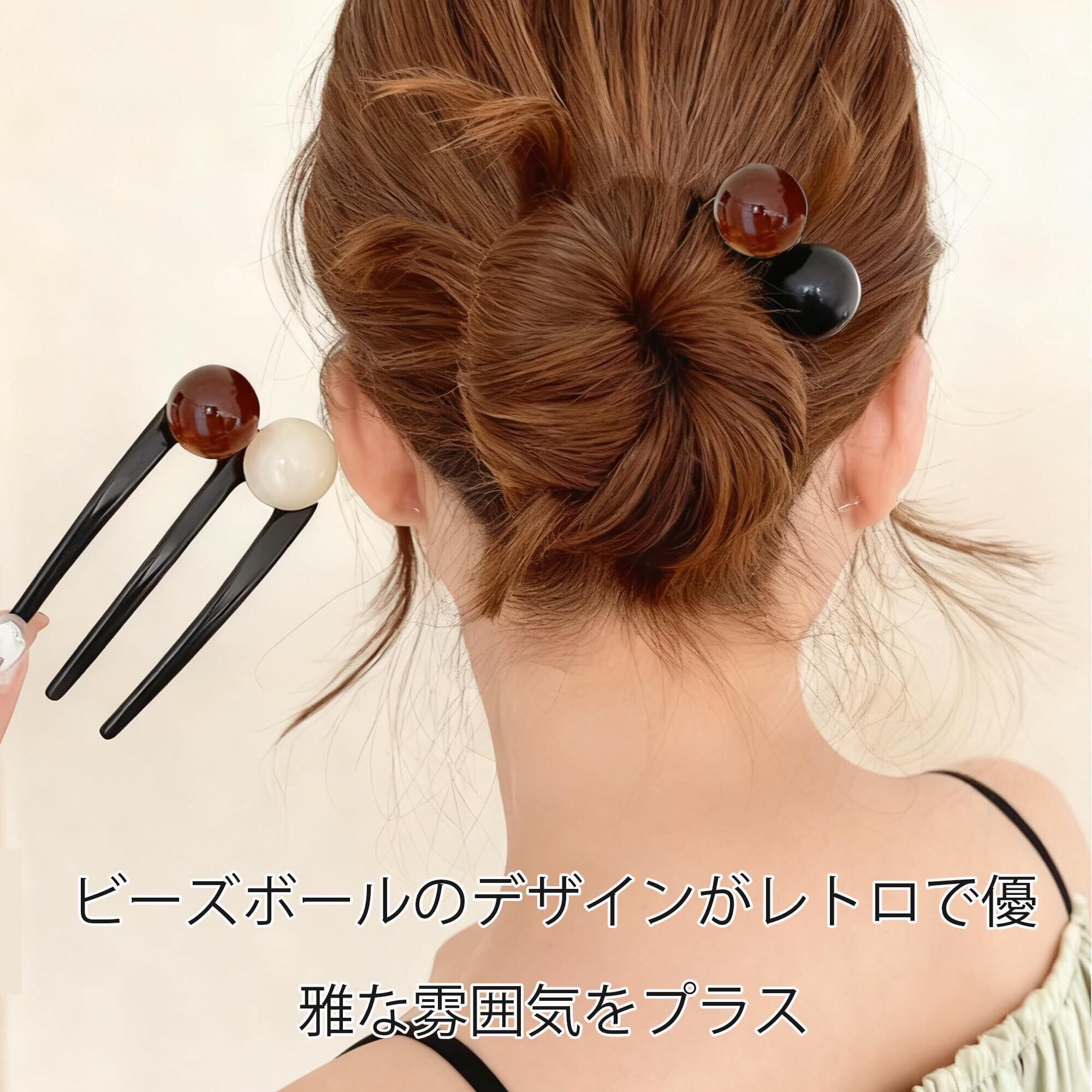 【夜会巻きコーム】ヘアコーム はビーズボールのデザインがレトロで優雅な雰囲気をプラス。独自のU字型構造により、シンプルなまとめ髪から精巧な結い髪まで、様々なヘアスタイルを簡単に作ることができます。あなたのスタイルに無限の魅力を加えてくれます
