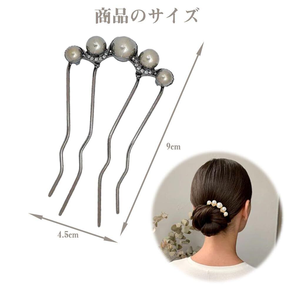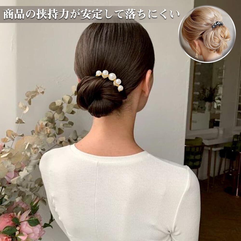 夜会巻きコーム パール ヘアコーム パール ヘアピン 簡単 耐久 使いやすい 結婚式 着物 成人式 パーティー 卒業式 和装 花嫁 普段使い(ブラック+ゴールド)