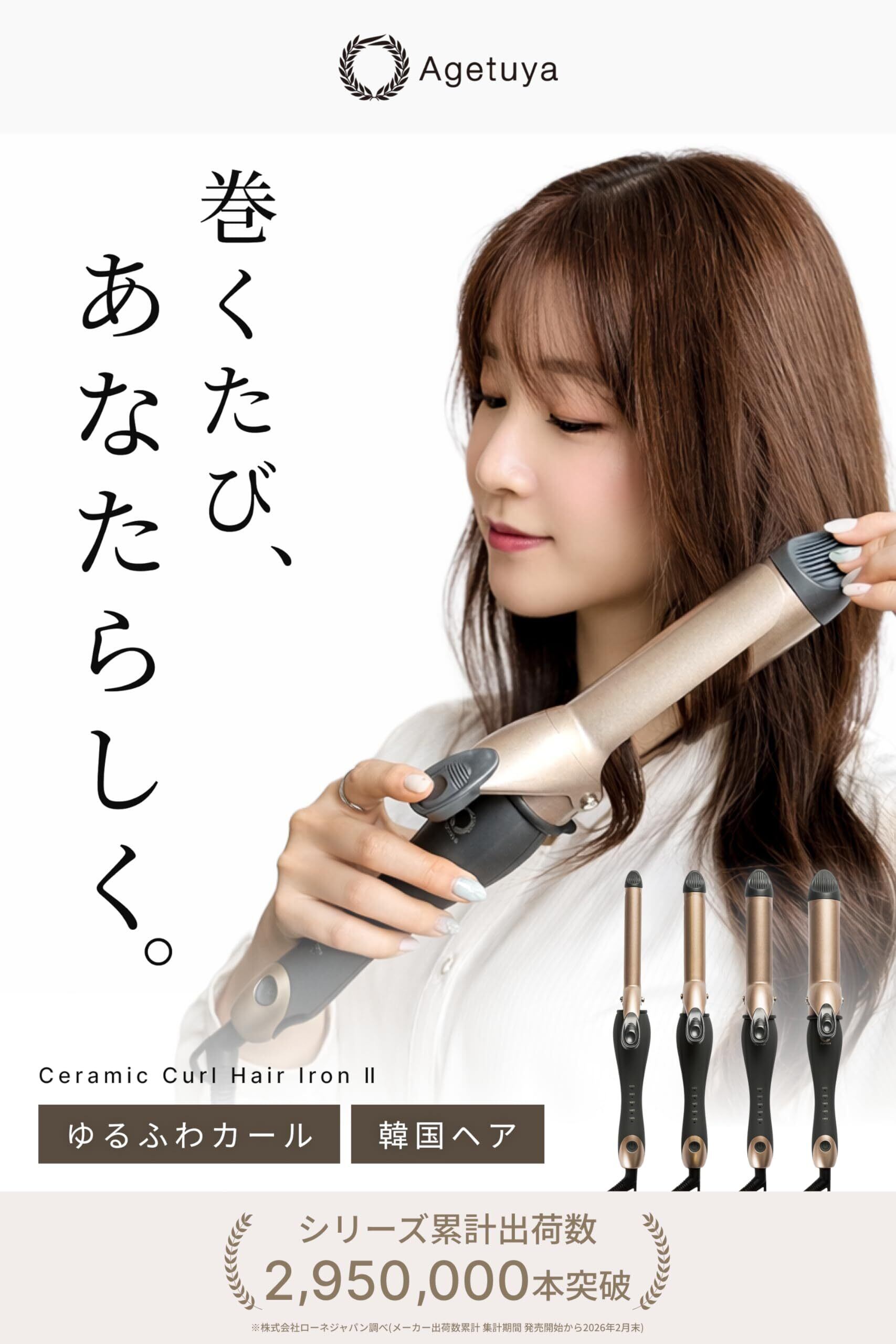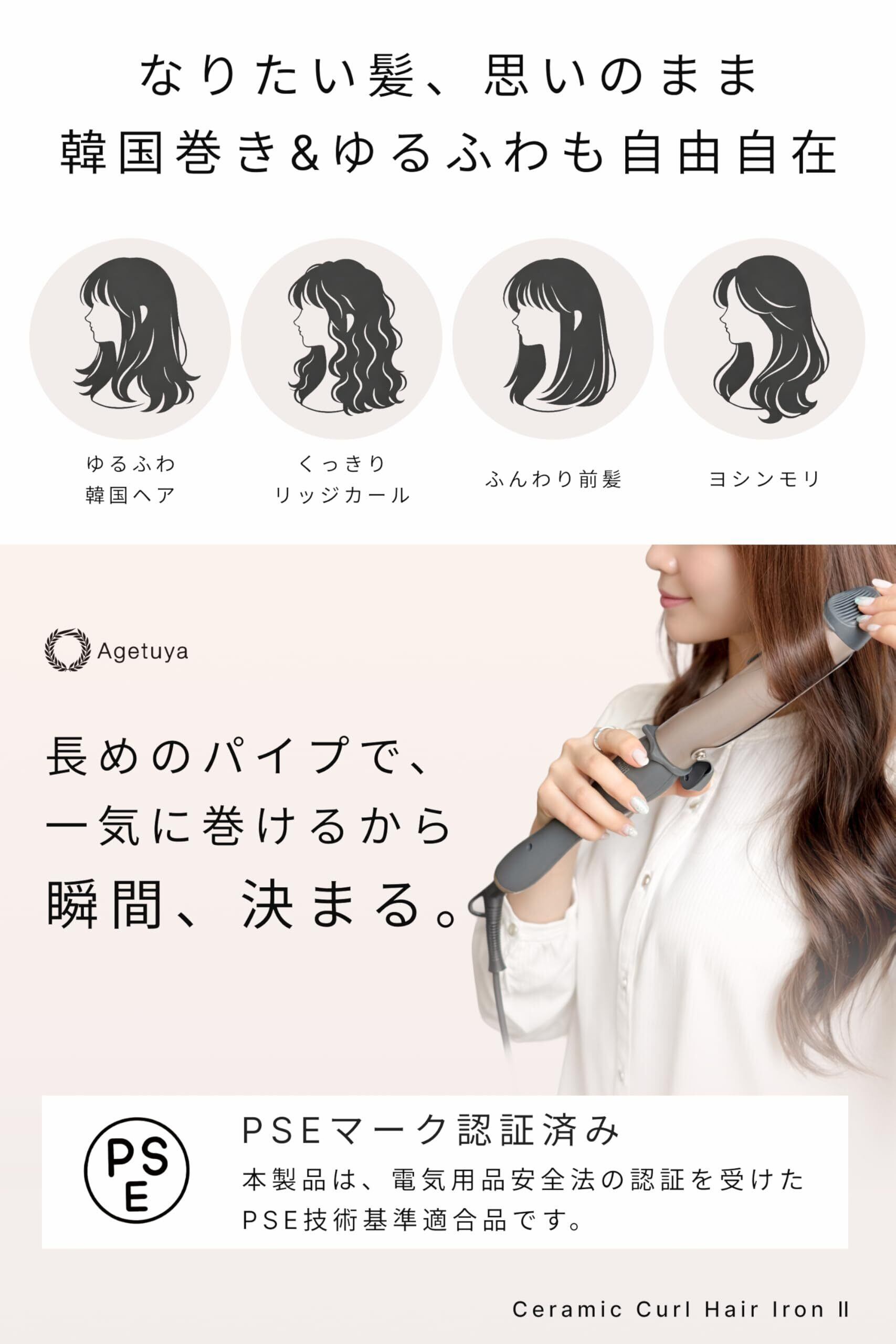【韓国風カールをつくる38mm】【最速42秒で温まるx大人っぽいデザイン】 コテ 38mm カールアイロン MAX220℃ セラミック カールヘアアイロン2 アゲツヤ