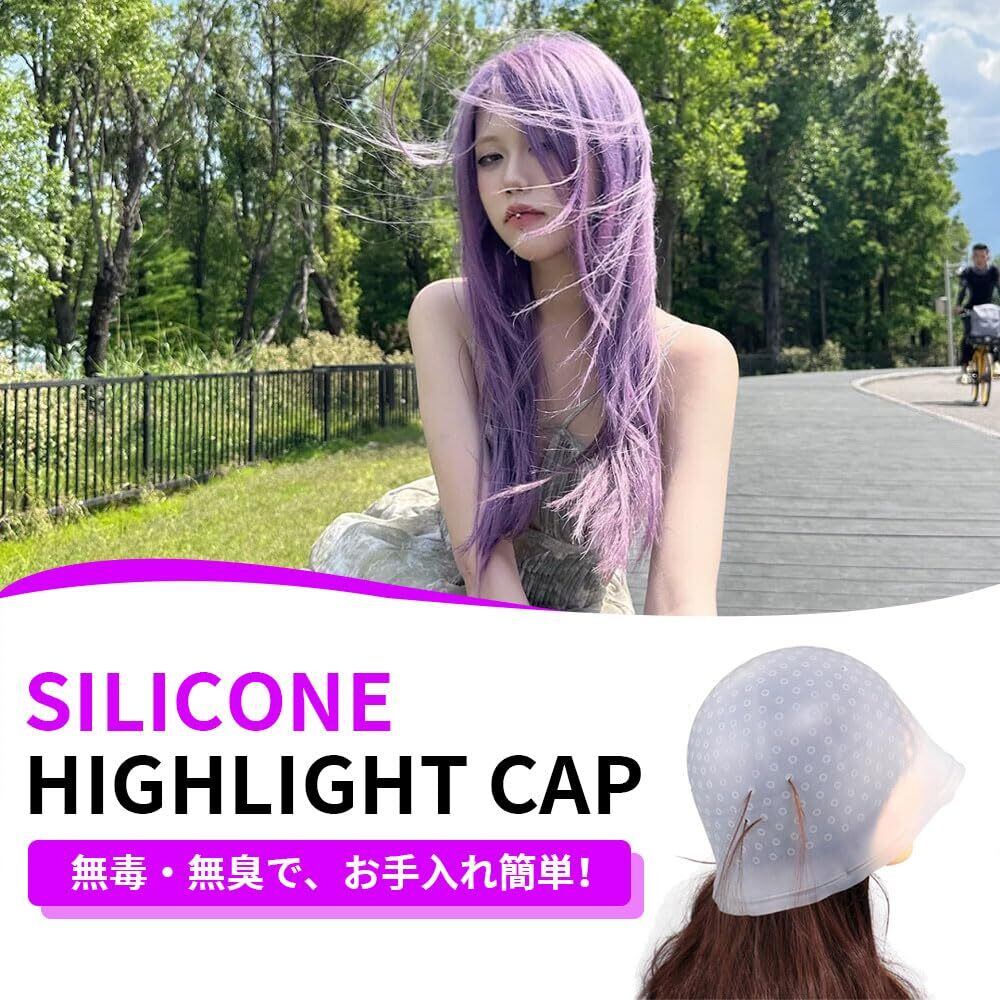 毛染めキャップ メッシュキャップ シリコン製 ハイライト用 穴あき済み ヘアカラーガイド付き 部分染め 自宅 美容室兼用 男女兼用 セルフカラー用