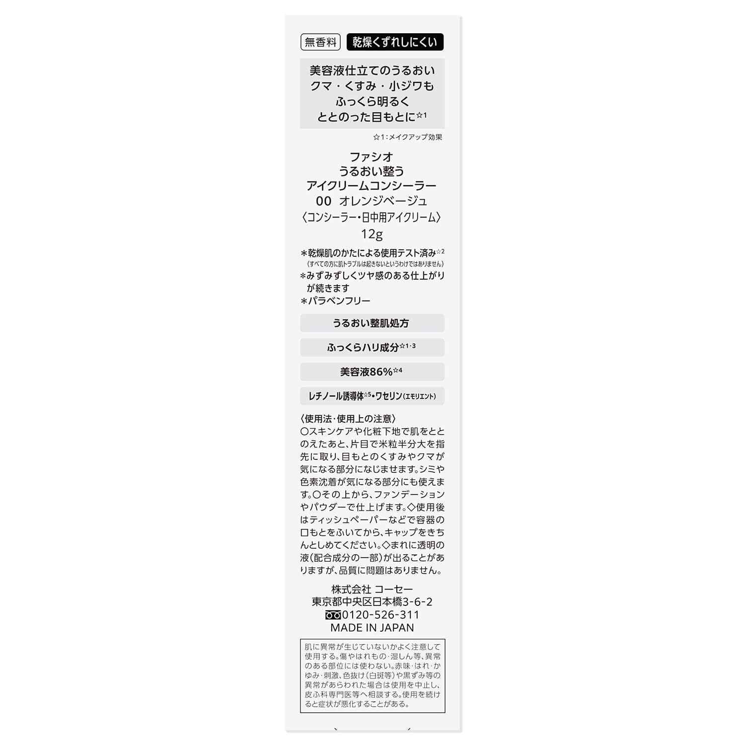 【人気商品】FASIO(ファシオ) うるおい整う アイクリームコンシーラー 00 オレンジベージュ 12g 目もと用コンシーラー 乾燥 クマ シミ 美容液 ツヤ 色ムラ補正 レチノール誘導体 無香料
