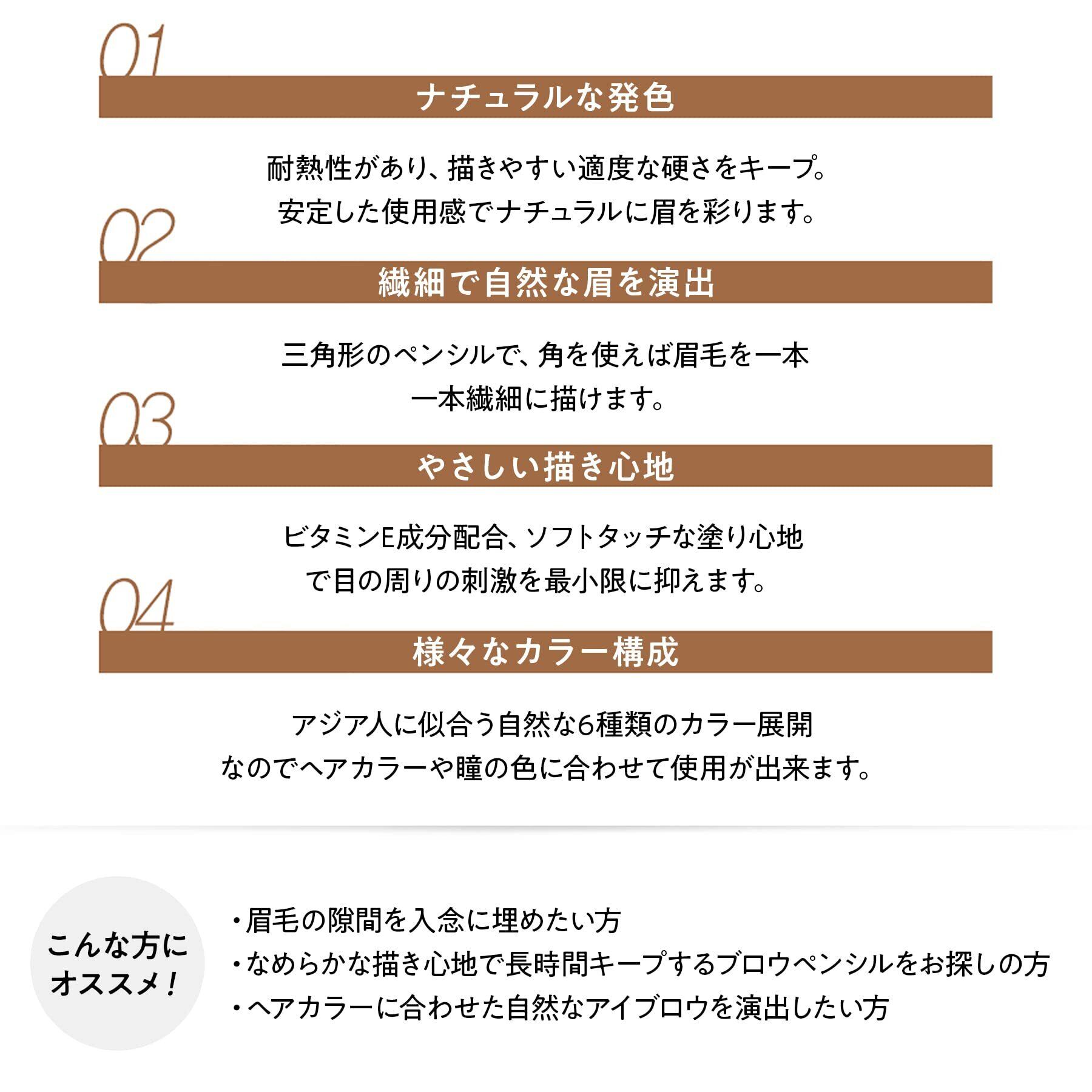 なめらかに描けるアイブロウペンシル、アッシュ系ヘアによくなじむアッシュブラウンカラー 原材料・成分 酸化鉄、酸化チタン、水添ダイズ油、水添ココグリセリル、水添野菜油、マイカ、ステアリン酸亜鉛、ステアリン酸、カルナウバロウ、トリイソステアリン酸ポリグリセリル-2、水酸化Al、トコフェロール、カプリリルグリコール、フェノキシエタノール、パルミチン酸アスコルビル、ヘキシレングリコール 使用方法 ステップ 1 : 三角形の広い部分で眉の隙間を埋めるようにやさしく描きます。ステップ 2 : 狭い部分を使用して、眉を一本一本丁寧に描きます。 続きを見る