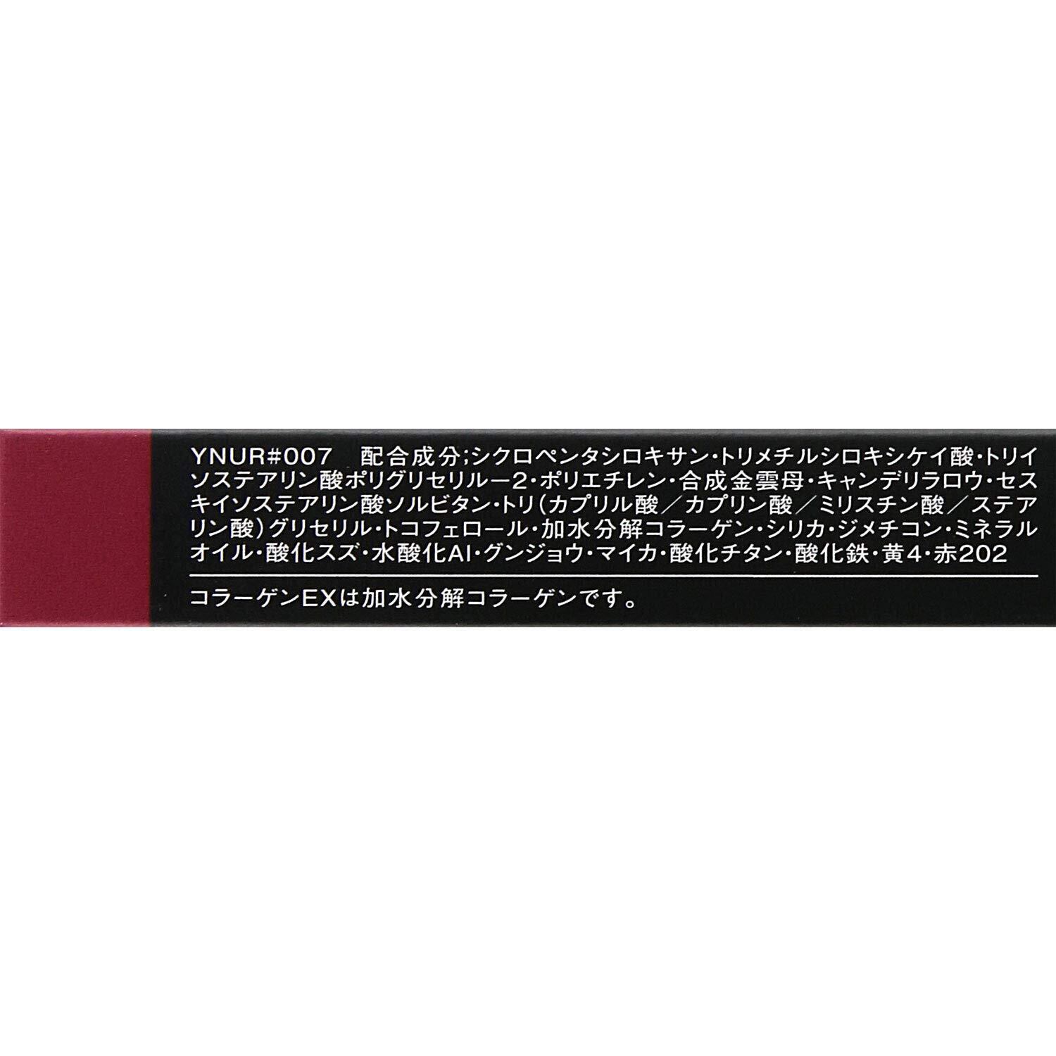 シクロペンタシロキサン、トリメチルシロキシケイ酸、トリイソステアリン酸ポリグリセリル-2、ポリエチレン、合成金雲母、キャンデリラロウ、セスキイソステアリン酸ソルビタン、トリ (カプリル酸/カプリン酸/ミリスチン酸/ステアリン酸) グリセリル、トコフェロール、加水分解コラーゲン、シリカ、ジメチコン、ミネラルオイル、酸化スズ、水酸化Al、グンジョウ、マイカ、酸化チタン、酸化鉄、黄4、赤202