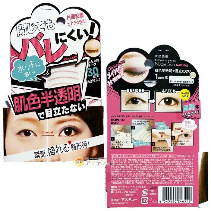貼るだけ簡単 瞬簡整形! まぶたを閉じてもバレにくい肌色半透明の二重テープ!