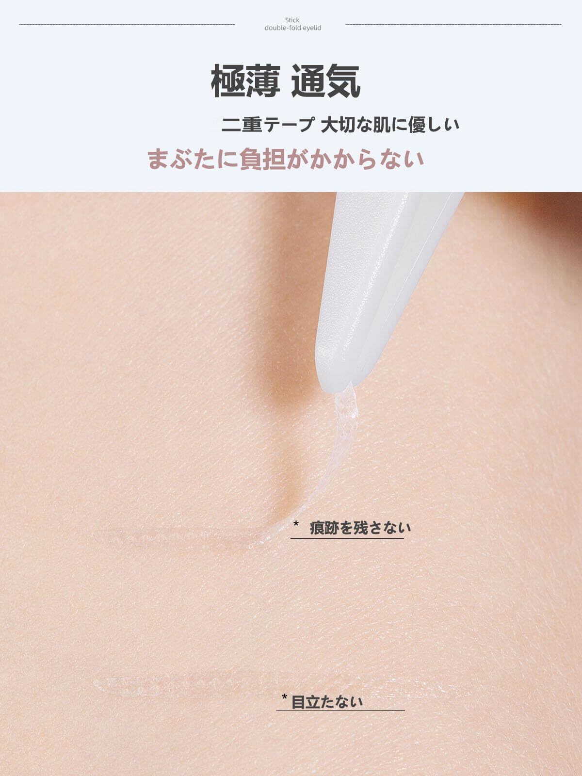 【超自然・バレない】極細素材なのでテカらないし、非常に目に見えない透明色です。網状になっているおかげでまぶたへの馴染み具合が高く、メイクも乗ります。強粘着&防水に優れているので1日しっかりキープします。キラキラな目を作成し、目を大きく見せます。