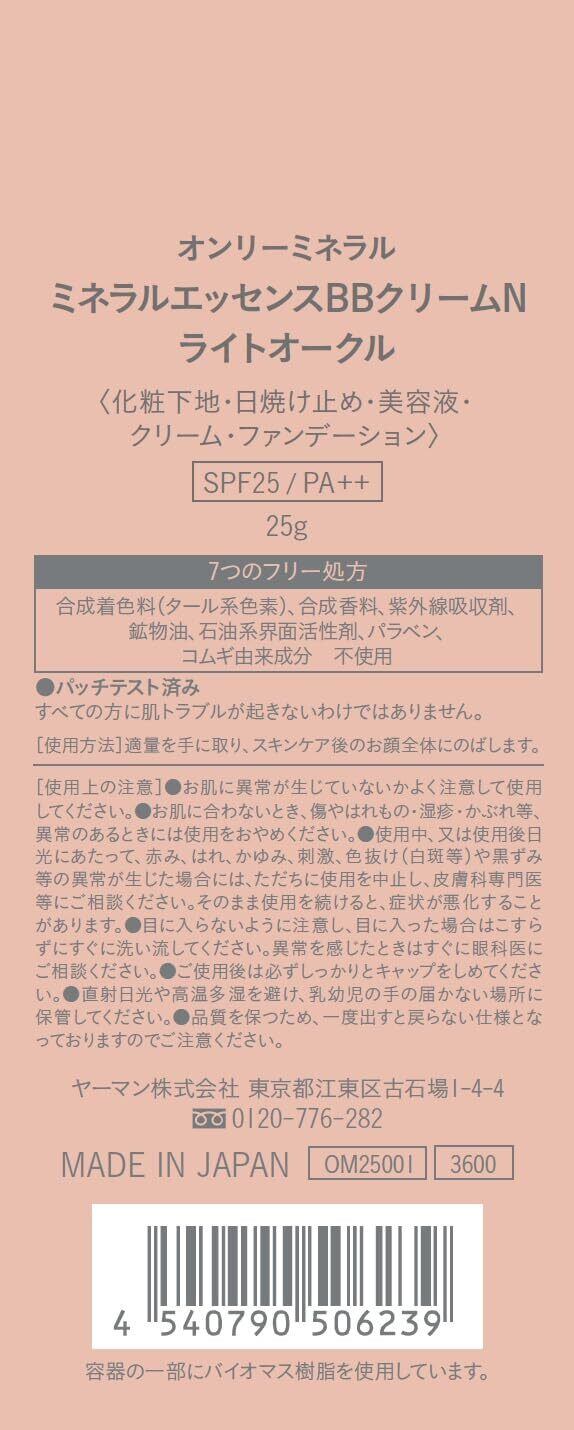 オンリーミネラル(ONLY MINERALS) ミネラルエッセンスBBクリームN ライトオークル 25g 毛穴レス 石けんオフ
