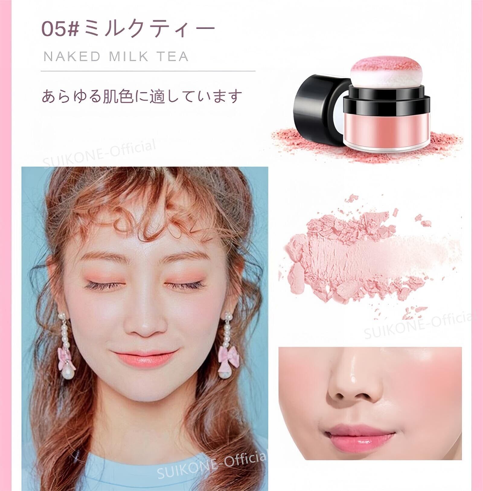 【在庫処分】チーク ポンポンミネラルチーク パフ付き ハイグロス コンター フェイス ブラッシュ クッション ソフト 高発色 軽量感 通気性 ナチュラル コスメ (1, 05#ミルクティー, 4.7 x 4.7 x 5 cm)