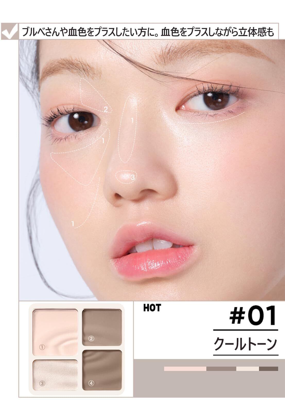メリハリマスターパレット シェーディング マットハイライト ハイライトパウダー ノーズシャドウ シェーディング 4色パレット 中国コスメ 立体感 小顔 (#01 クールトーンHOT)