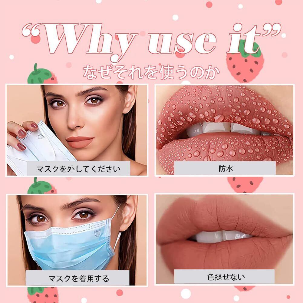 【健康的で安全】:一日中爽やかさを保ち、色ムラを防ぎます。豊富な栄養で唇に潤いを与え、健康的で美しい唇を作ります。 天然成分と植物オイルを配合しているので、水や食べ物に触れても剥がれにくく、唇が長持ちします。