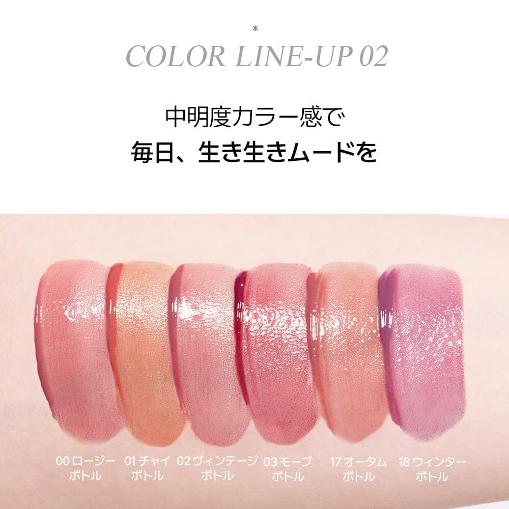 【重ねるほど鮮やかな発色】薄付きで柔らかいカラーで、重ねる度に鮮明で透明感のあるカラーを出してリップに密着。時間が経っても崩れ難く、鮮やかなツヤ感とカラーを表現します。