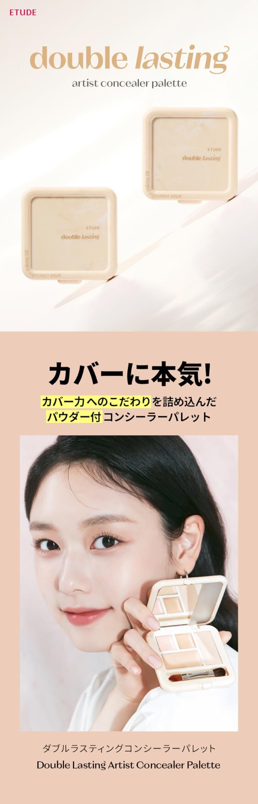 【特価セール】ETUDE [エチュード公式] ダブルラスティングコンシーラーパレット ミラー内蔵 ミックスゾーン チップ内蔵 カバー力 シミ 赤み クマ クリームコンシーラー パウダーコンシーラー ナチュラルな仕上がり 4g 1個 (x 1) (02(21-23号))