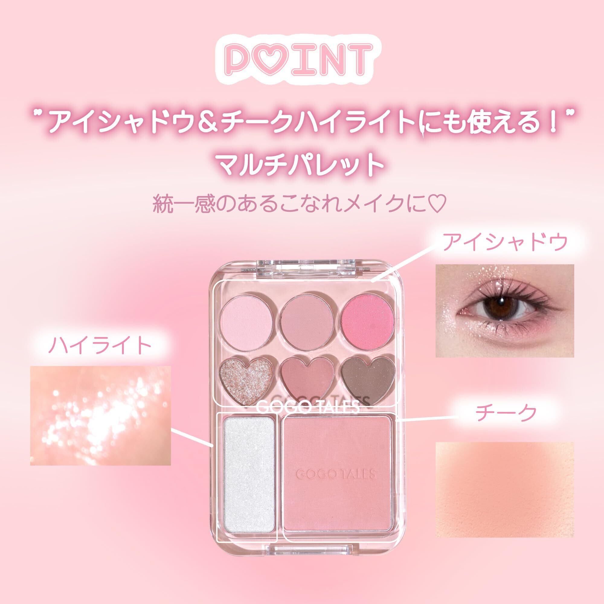 【アイシャドウ、チーク、ハイライト】に使えるマルチパレット。可愛いカラーが詰まった毎日使いたくなる万能アイテムで、自分だけのメイクを楽しんで"