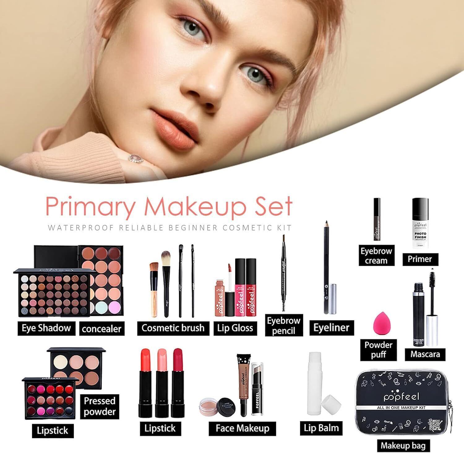 POPFEEL メイクアップセット 24点 メイク 初心者セット コスメセット 化粧品セット 口紅 リップ アイシャドウ アイシャドウパレット アイライナーペンシル マスカラ チーク コンシーラー ハイライトパレット 防水 防汗 長持ち 化粧品バッグ付 プレゼント フル美容メイクアップ化粧品セット