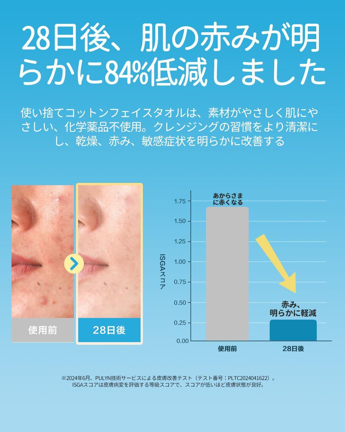 【全棉!吸水性と耐久性の強化】Winnerフェイスタオルが厚くなったことで吸水性が向上し、さらに耐久性も強化されています。水に濡れても破れにくいため、洗顔や拭き取りに理想的なアイテムです。布のように耐久性があって、洗って使えます。数回の拭き取り使用可能です。