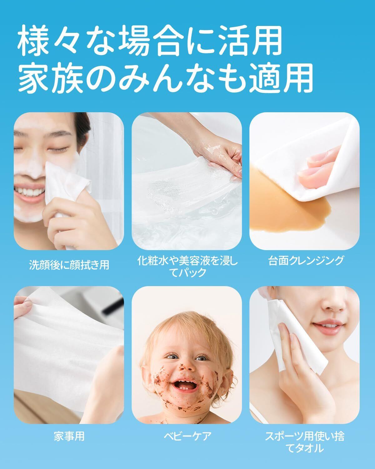 【全棉!加厚しても経済的】高品質なコットン製でありながら、価格はお手頃。品質認証も取得しており、安心してお使いいただけます。 さらに、このフェイスペーパーは乾いたままでも湿らせても使えるため、洗顔タオル、ウェットティッシュ、メイク落としシート、ティッシュペーパー、おしりふき、化粧コットン、手口拭き、お掃除など多目的に活用可能です。