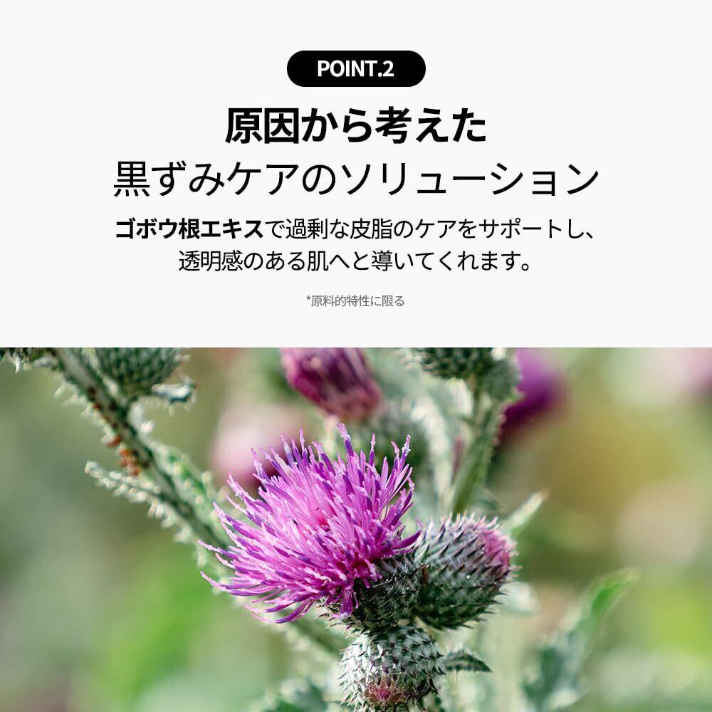 【皮脂に対するスキンケア】アルクチウムマジュス根エキスで過剰な皮脂をケアし、透明感のある肌へ。空いた毛穴をヒアルロン酸で埋めるように保湿ケアし、うるおいを与えます。