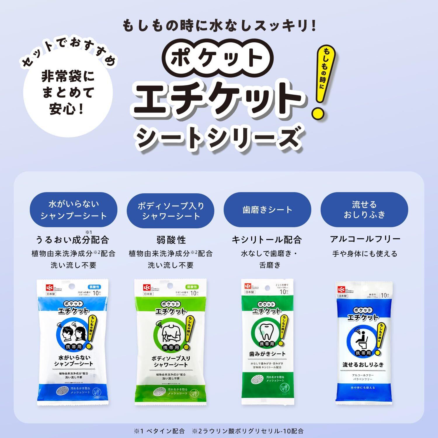 レック(LEC) ポケットエチケット 携帯用 ボディソープ入り シャワーシート 10枚入×6個 日本製/災害 旅行 病中 に/植物由来洗浄成分配合/弱酸性/洗い流し不要/サボンの香り