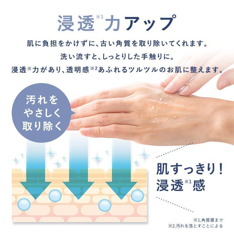 肌に塗って、くるくるやさしくマッサージするだけで、ジェルが古い角質と反応してポロポロと余分な角質をやさしく除去します。 肌に負担をかけずにやさしくマッサージすることで、毎日の洗顔だけでは取り除くことの出来ない古い角質を除去します。 週に2回の角質ケアで美容成分の浸透を高め、毎日のお手入れがもっと効果的になります。