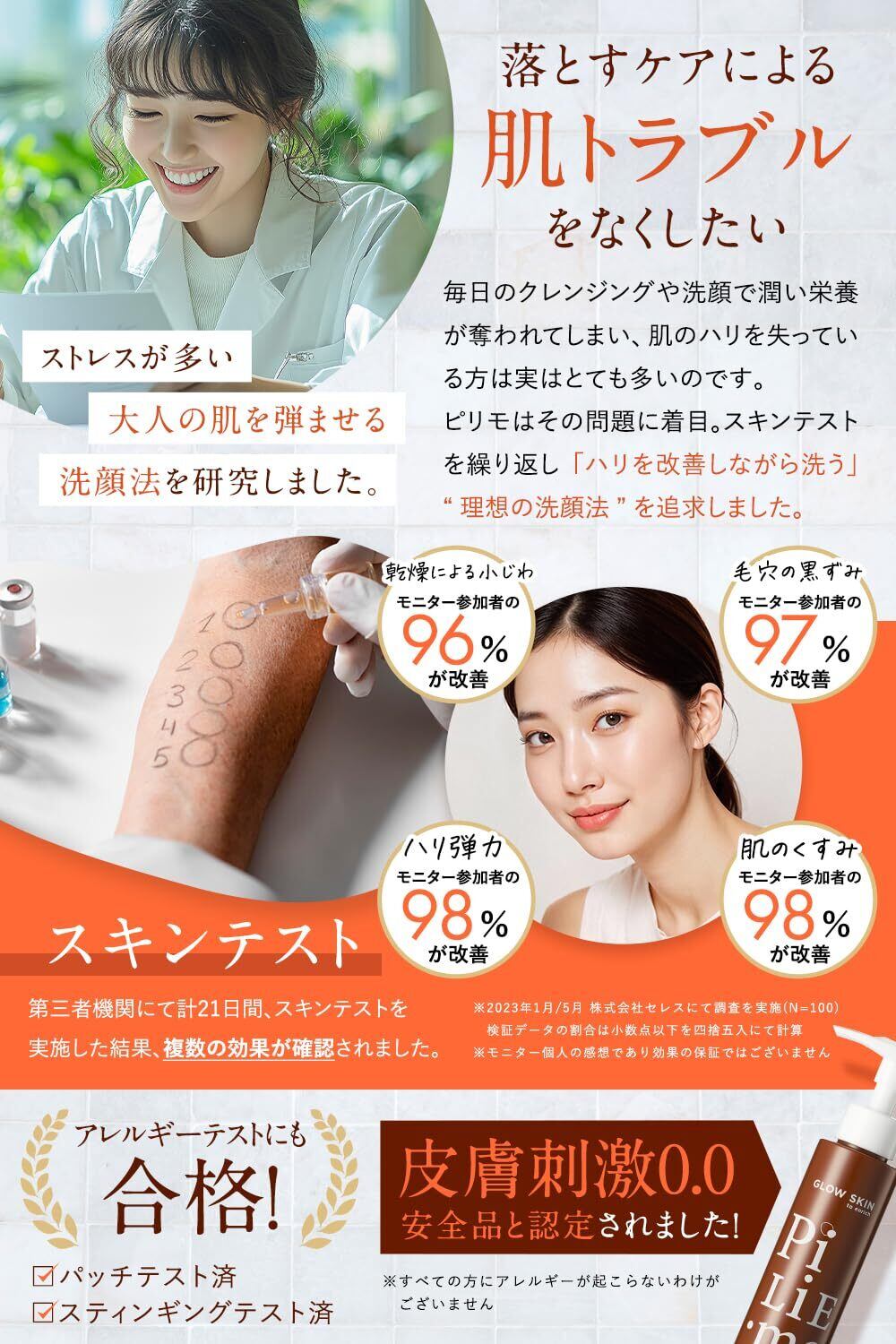 商品特長 アンチエイジング, オイルコントロール, メイク落とし, 引き締め, 毛穴ケア
