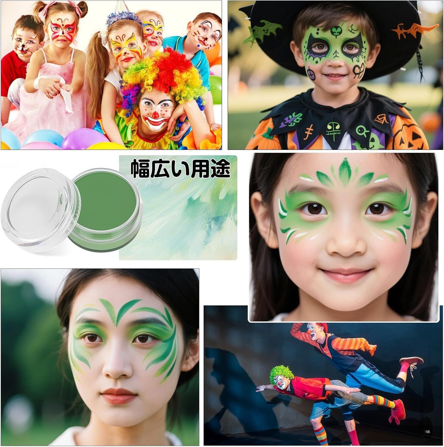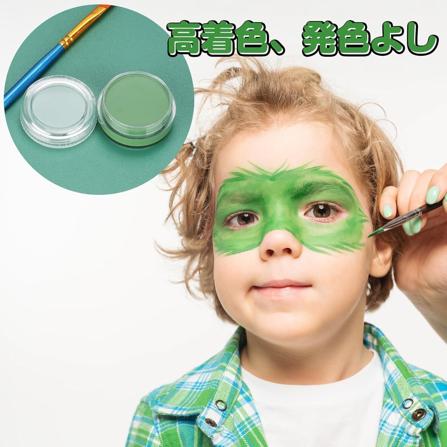 【セット内容】ボディペイント*単色(緑) 適応対象:6歳以上 性質:油性 用量:10g。指や筆を使用していただき直接顔や体に塗ってOKです