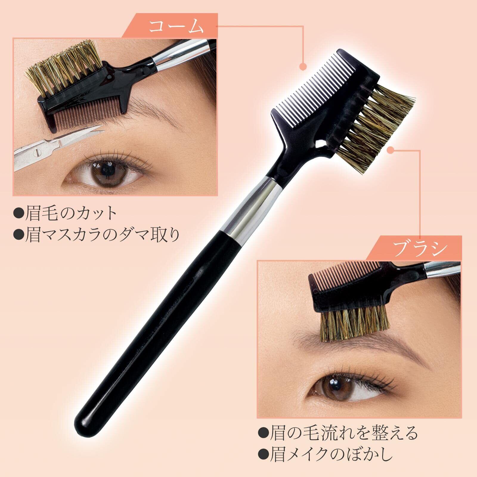 コモライフ 天然馬毛の眉用ブラシ&コーム 眉 ブラシ コーム メイク アイブロウ ブラシ 馬毛 持ち運び 日本製