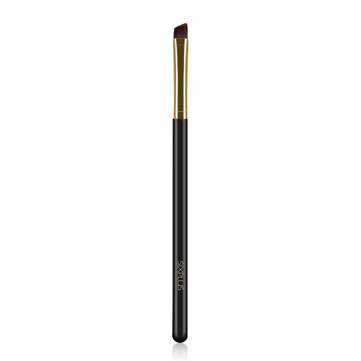 SIXPLUS アイメイクブラシ マスカラブラシ 完全手作りの精製パウダーブラシ、選りすぐりの素材:ナイロンの毛 + アルミニウムチューブ + 木製、サイズ:16.7CM、ニューヨークのデザイナーによってデザインされました。小サイズの斜角メイクブラシは、マスカラブラシとして、または目の下の涙袋の線を描くために使用できます。毛は細やかでふわふわしており、柔らかくて手に刺さりません。精巧なブラック & ゴールドの配色デザイン + 実木のハンドル + 厚手の金属部分、使いやすく、丈夫で汚れに強いです。