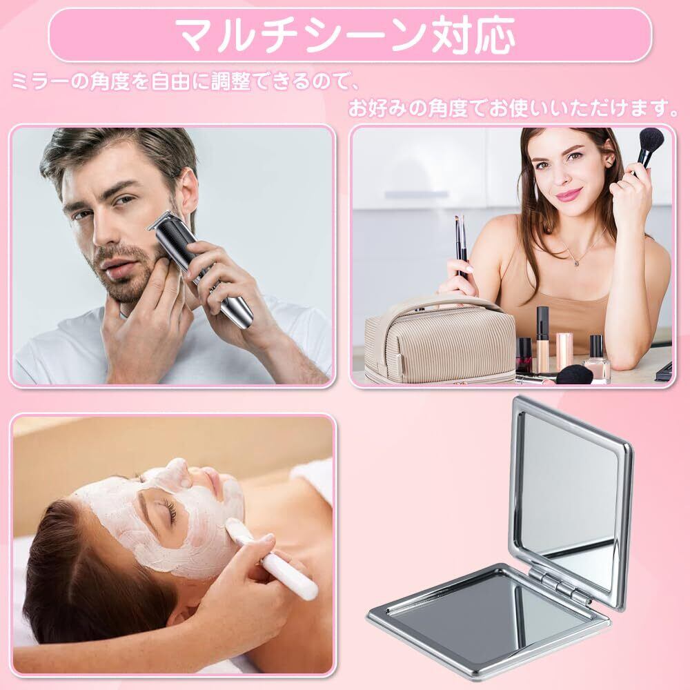手鏡折畳み コンパクトミラー 携帯ミラー 両面鏡 超軽量 人気 おしゃれ 角度調整可(1個/方形)