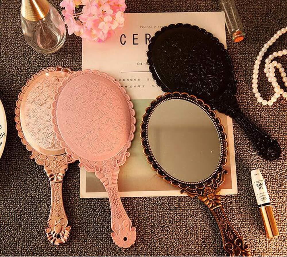 HJ ハンドミラー 手鏡 携帯ミラー 手持ち鏡 化粧鏡 古風 おしゃれ お姫様 (ブラック, 1個セット)