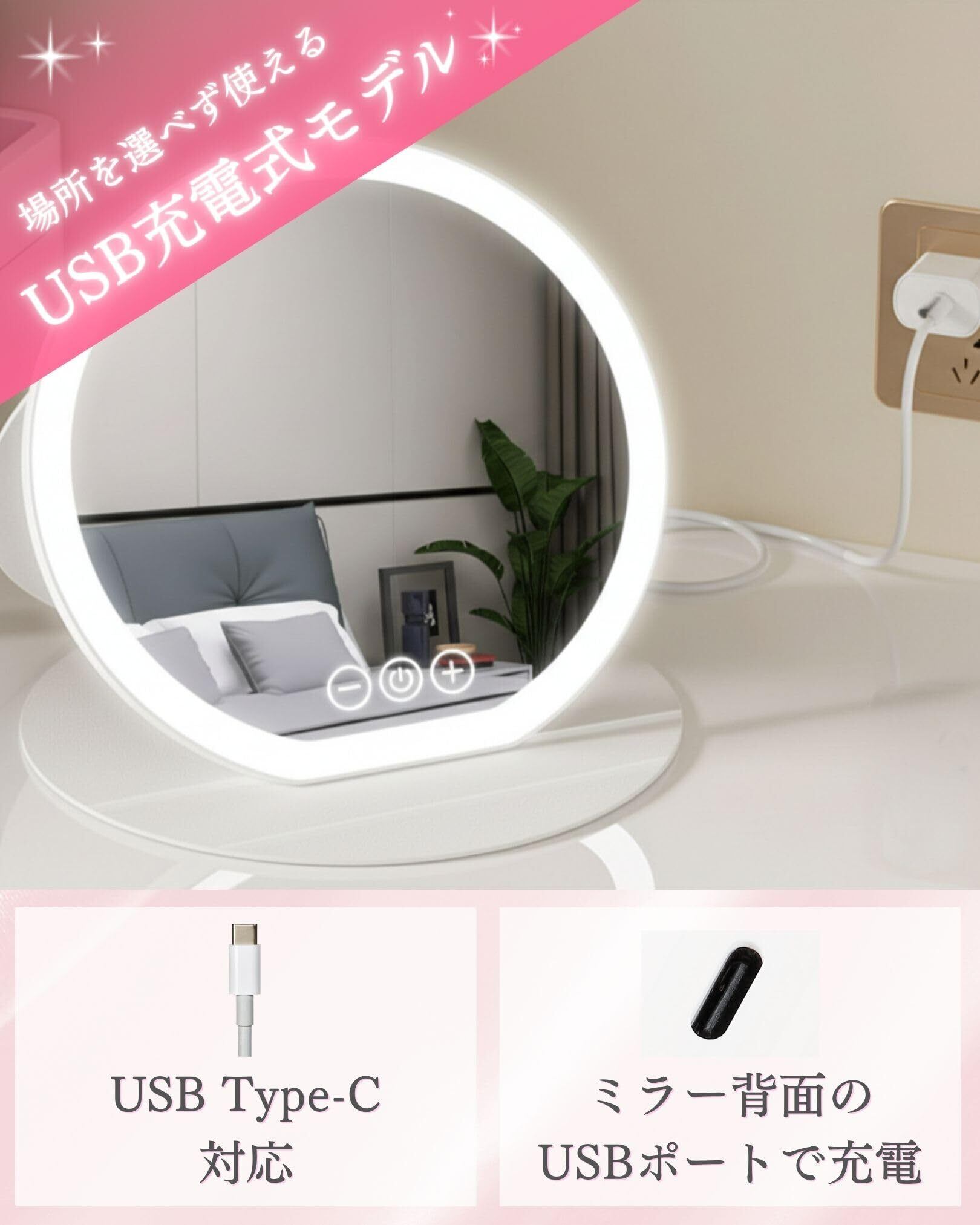 特徴 USB充電, コンパクト, コードレス, タッチセンサー, ライト付き