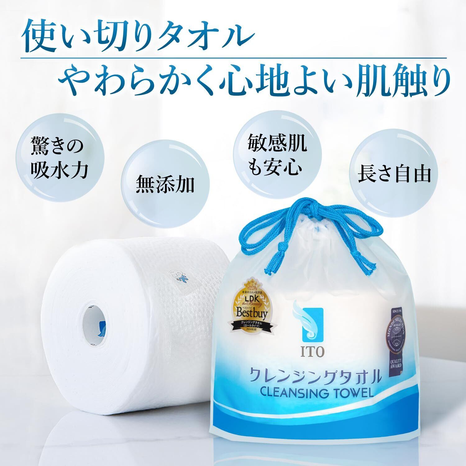 【3個セット】ITO クレンジングタオル 長さお取り自由 使い捨てタオル 乾湿両用 洗顔 使い捨て フェイシャルタオル コットンパフ メイク落とし クレンジング フィットネス スポーツ用タオル 敏感肌 肌荒れ対策 ITOオリジナル鮫小紋エンボス