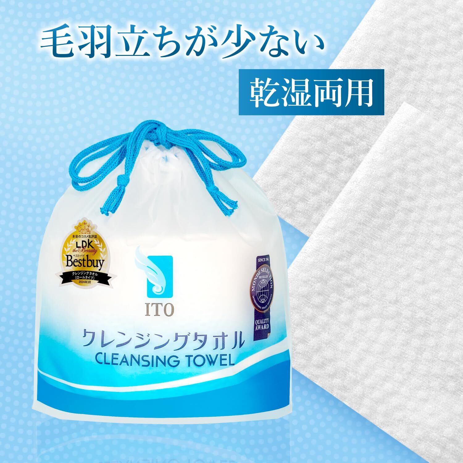 Mondeセレクション5年連続受賞。クレンジングタオルと言えば「ITO」です!長さ自由調整、生活に欠かせない一品!オリジナル江戸鮫小紋生地模様。肌触り&吸水力TOPレベル。Oeko-Tex 世界最高水準の繊維製品認証取得。赤ちゃんにも安心。