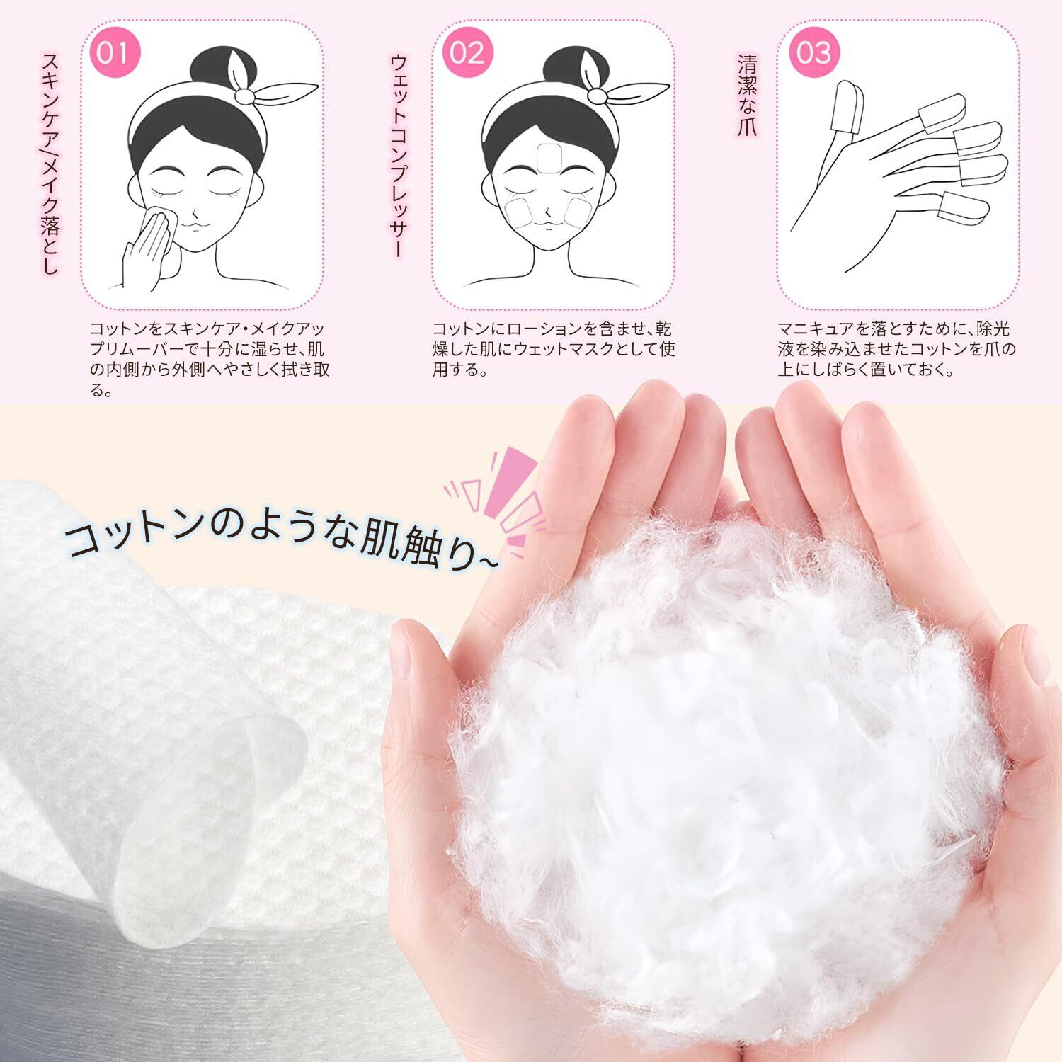 【立体エンボス加工|洗浄力UP】特殊な凹凸パターンがメイク汚れを絡め取り、通常のコットンより30%多く汚れを除去。角質ケアにも効果的です。