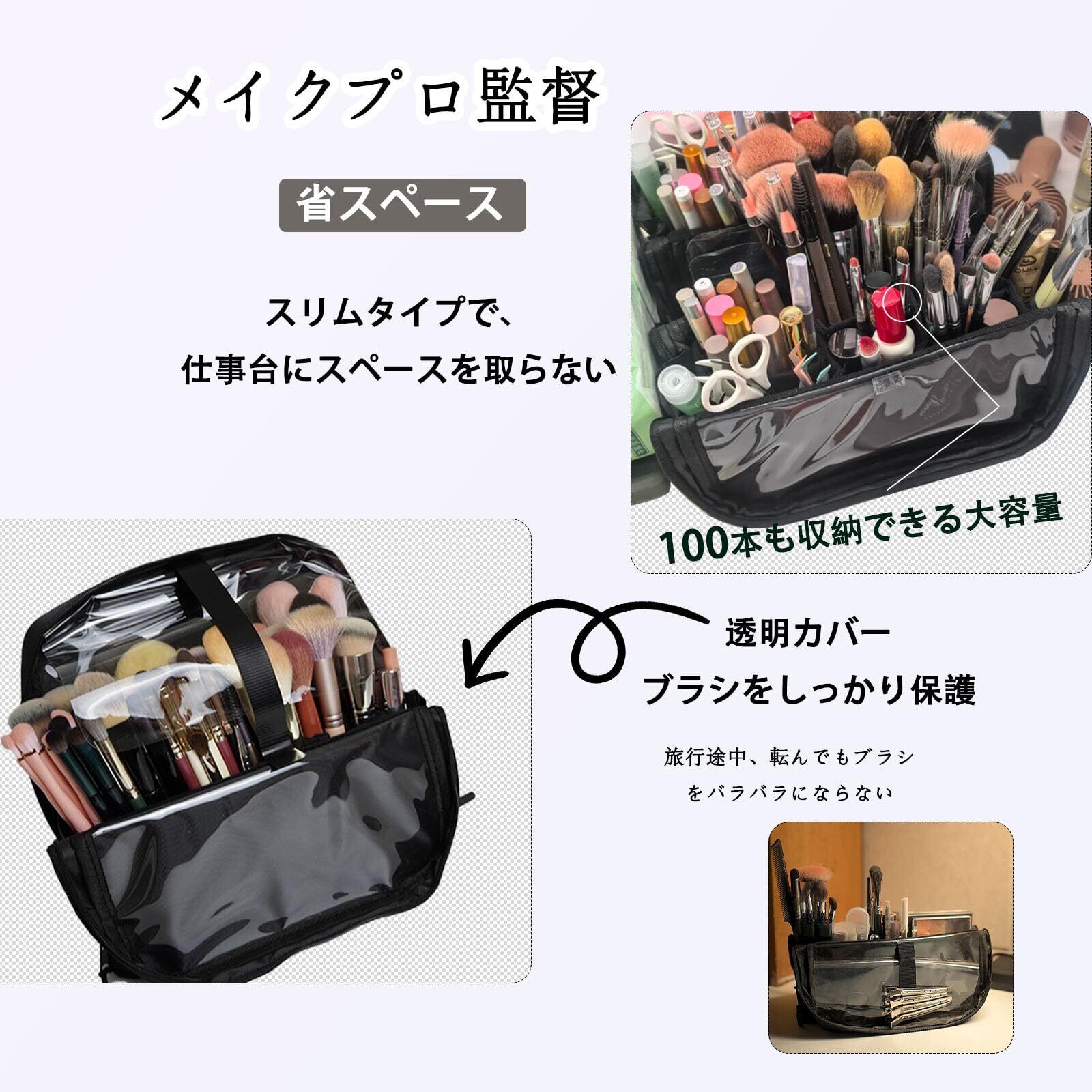 Yousimeiプロメイクブラシケース メイク収納ポーチ ブラシスタンド 化粧筆入れ 化粧ポーチ 自立可 仕切り板調節 大容量 旅行 携帯便利 透明カバー 蓋つき 50本以上入れ お手入れしやすい 美容師収納 プロ仕様