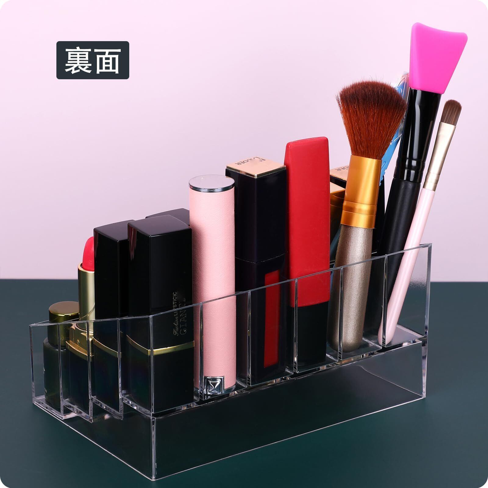 サイズ:14.5cm(縦)×9.7cm(横)×7.3cm(高さ),各スロットサイズ:2.2cm(縦)×2.2cm(横)×4.2cm(高さ)。直径または幅が2.2cm以内の口紅やその他アイテムに適しています。コンパクトで省スペース設計、ビューティーアイテムの整理整頓に最適です。