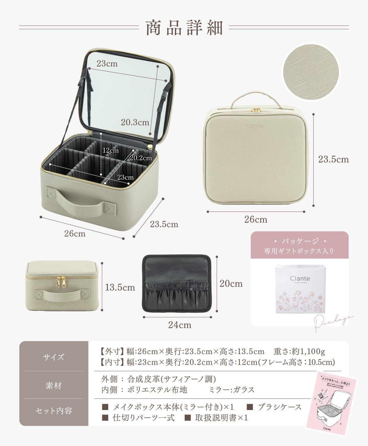 メイクボックス 鏡付き 大容量 【大人な6色・縦が整える13cm効果】 コスメボックス 化粧ボックス 持ち運び 収納 高さ13cm (グレージュ)