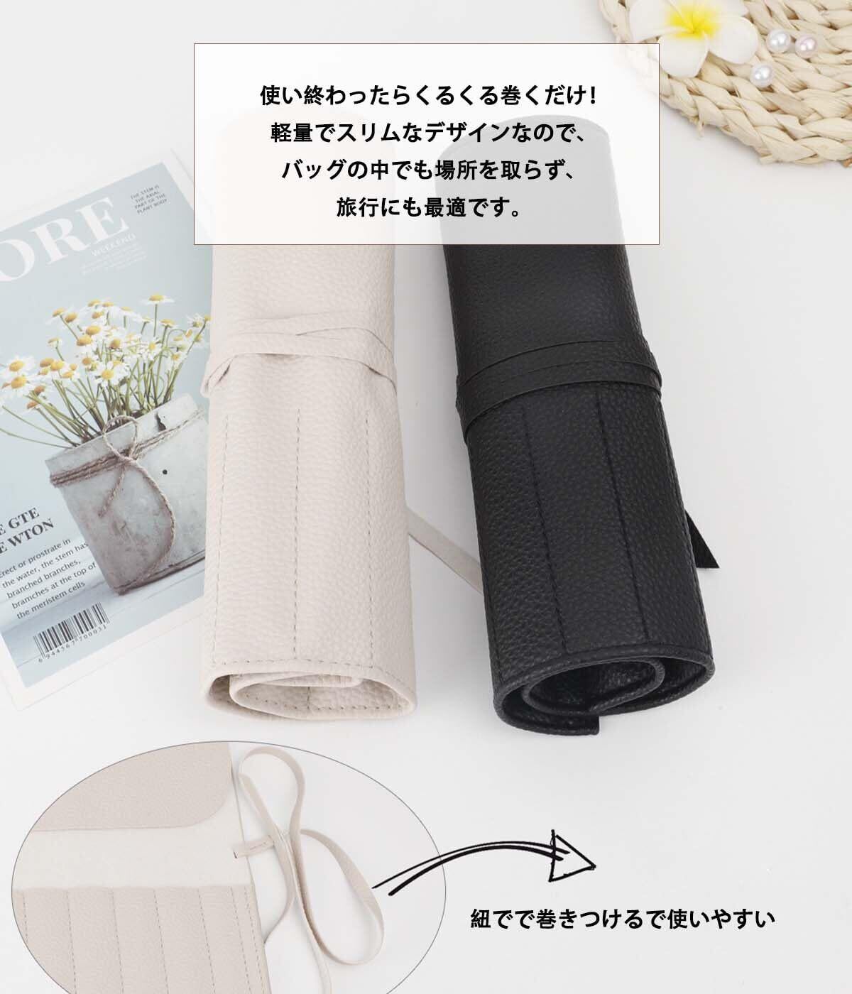 メイクブラシケース メイクブラシポーチ 巻き型 10本ポケット 化粧筆ケース 携帯用 化粧筆入れ メイク道具ホルダー コンパクト 旅行 持ち運び (ブラック)