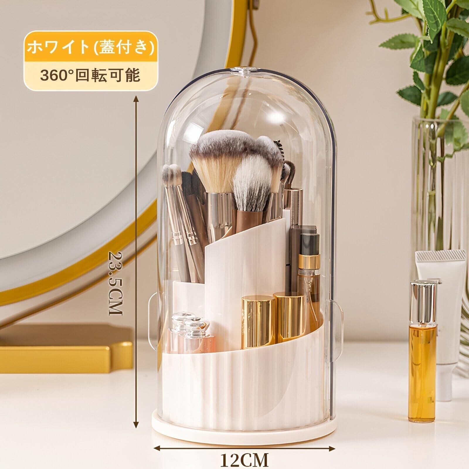 蓋付きホルダー メイクアップブラシケース デスク用絶妙なペンホルダー 回転可能なメイクアップブラシホルダー コスメ収納 カラー 防水防塵 メイクボックス化粧品 小物入れ 回転化粧品オーガナイザー 回転収納ボックス 蓋付き 透明(ホワイト)