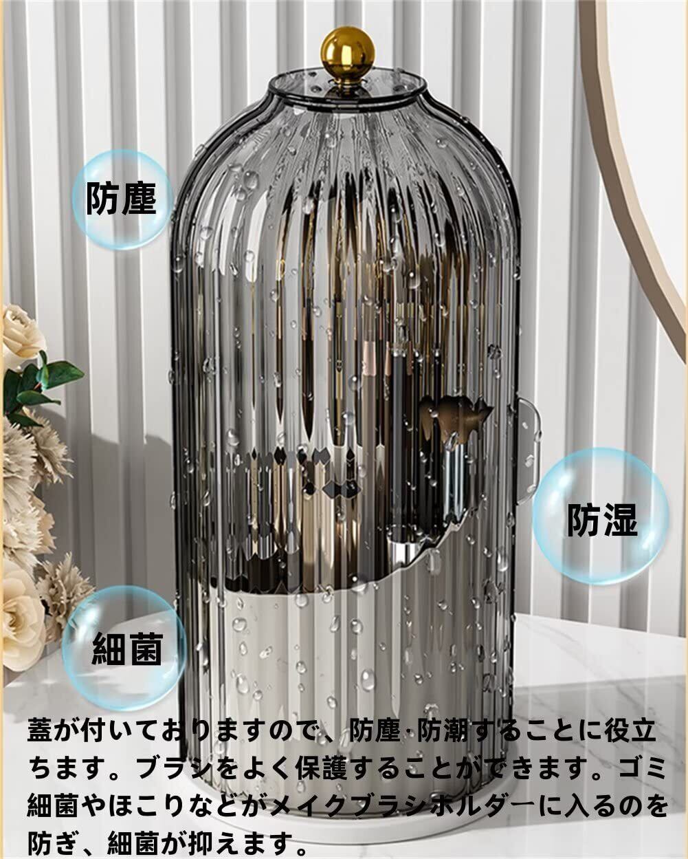 【デザイン】メイクブラシスタンドは透明な蓋デザインで、透明の素材で見やすく、閉じても中の化粧品やブラシが一目でわかって、メイクブラシの展示こともできます。高級感があるデザインで部屋を綺麗に飾ってます。